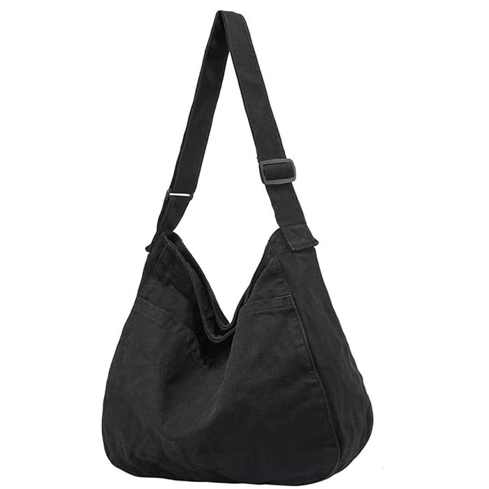 A minimalist and spacious canvas hobo-style shoulder bag, perfect for casual outings, travel, or daily errands. Its relaxed silhouette and soft construction make it a versatile and stylish choice for both men and women.
