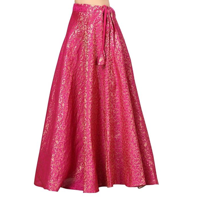 Studio Shringaar Women's Polyester Maxi Benaras Brocade Readymade Long Skirt
