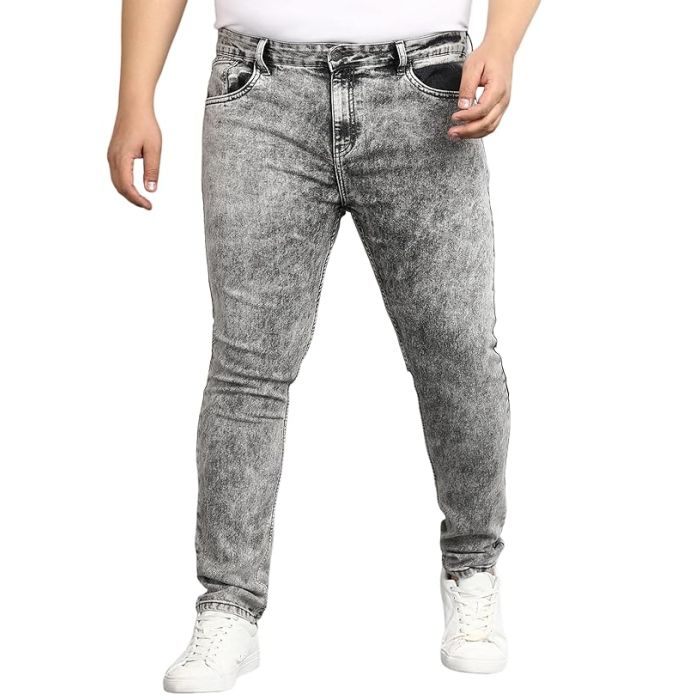 Elevate your style with these plus-size shaded whisker grey jeans, crafted from stretchable cotton Blend for all-day comfort. Featuring a mid-rise, regular fit, and classic 4-pocket design, they're perfect for casual, office, or party wear.